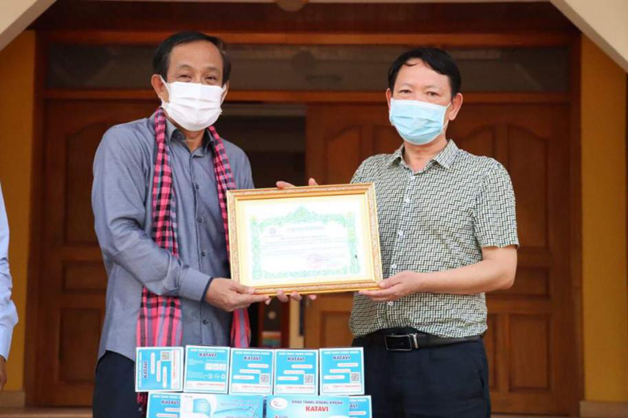 最后(hou),原(yuan)羅(luo)達(da)省長向(xiang)公(gong)司頒發了(le)捐贈證書,他講到(dao):“謝謝爾康制藥,相信在社會各界友好人士的共同支持下,柬埔寨會很快戰勝疫情。”原羅達省長表示將一如既往關注爾康制藥在柬埔寨的發展建設,全力以赴協調解決項目推進過程中遇到的一切困難,祝愿公司新項目能夠發展順利,早日投產。