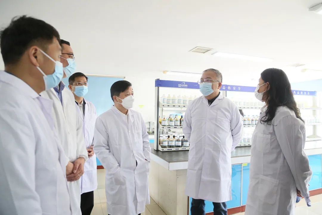 帥放文董事長為來訪領導匯報了企業經營現狀及安全生產工作落實情況,秦繼紅書記一行實地走訪了依托爾康制藥建設的國家藥用輔料工程技術研究中心與公司藥用輔料生產車間,對產品專利技術及創新研發工作、藥品原材料來源、生產加工過程及質量安全檔案資料等方面進行了詳細的問詢。