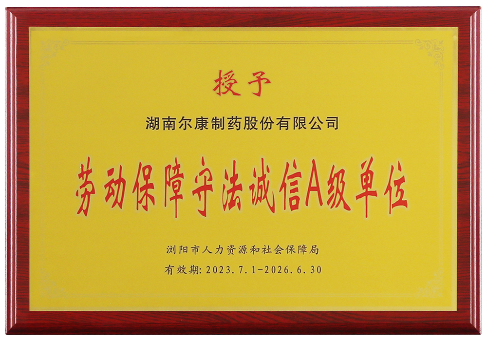 為督促用人單位遵守勞動保障法律法規,履行守法誠信義務、提高守法誠信意識,近日,瀏陽市人力資源和社會保障局經初步評價、實地檢查、綜合認定等程序,公布了2022年度用人單位勞動保障守法誠信等級評價結果,爾康制藥榮獲“勞動保障守法誠信A級單位”,A等級單位將優先享受推優推先及相關政策。