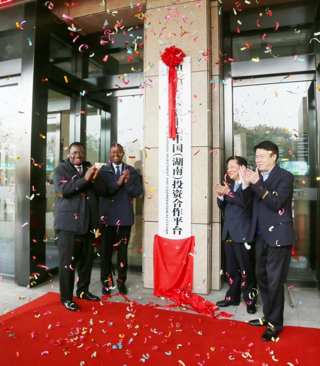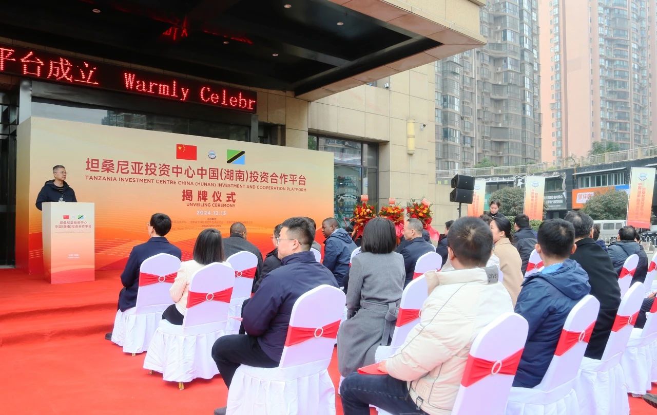 下午14時,坦桑尼亞投資中心中國(湖南)投資合作平臺揭牌儀式在紅橡國際廣場一樓舉行。